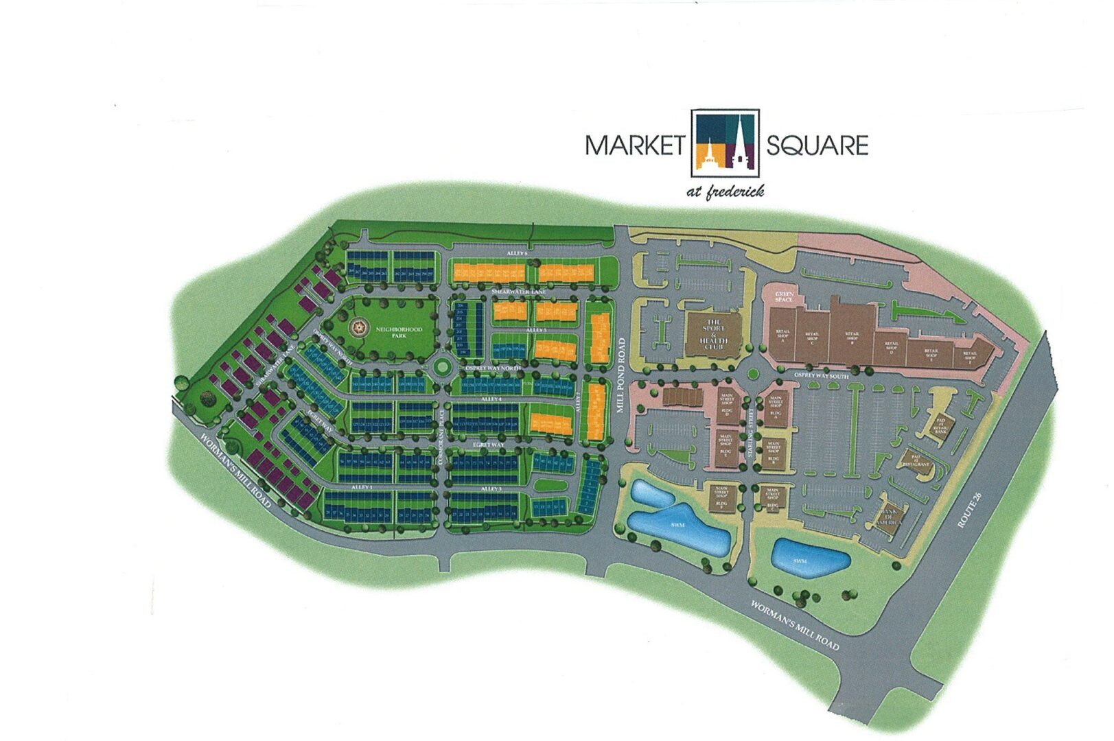 49 acre lot zoned high density residential and commercial. Bowers farm became Market Square. Located in southern Frederick County, MD, Market Square was voted “best New Mixed Use development” by the Frederick County Building Industry Association. It features 194,000 sq. ft. of commercial space and 117 residential units.